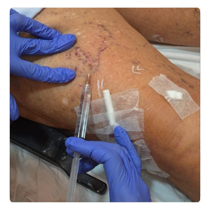A escleroterapia é uma opção de tratamento para pequenos vasinhos não relacionados a veias nutridoras. A técnica consiste na aplicação de um líquido esclerosante no interior das veias.